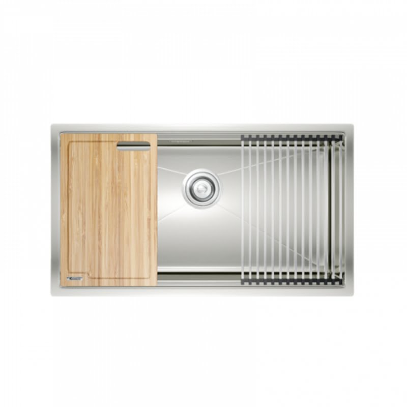 - Dòng chậu hạ bậc – tích hợp công năng: thớt gỗ, chậu rửa nhỏ