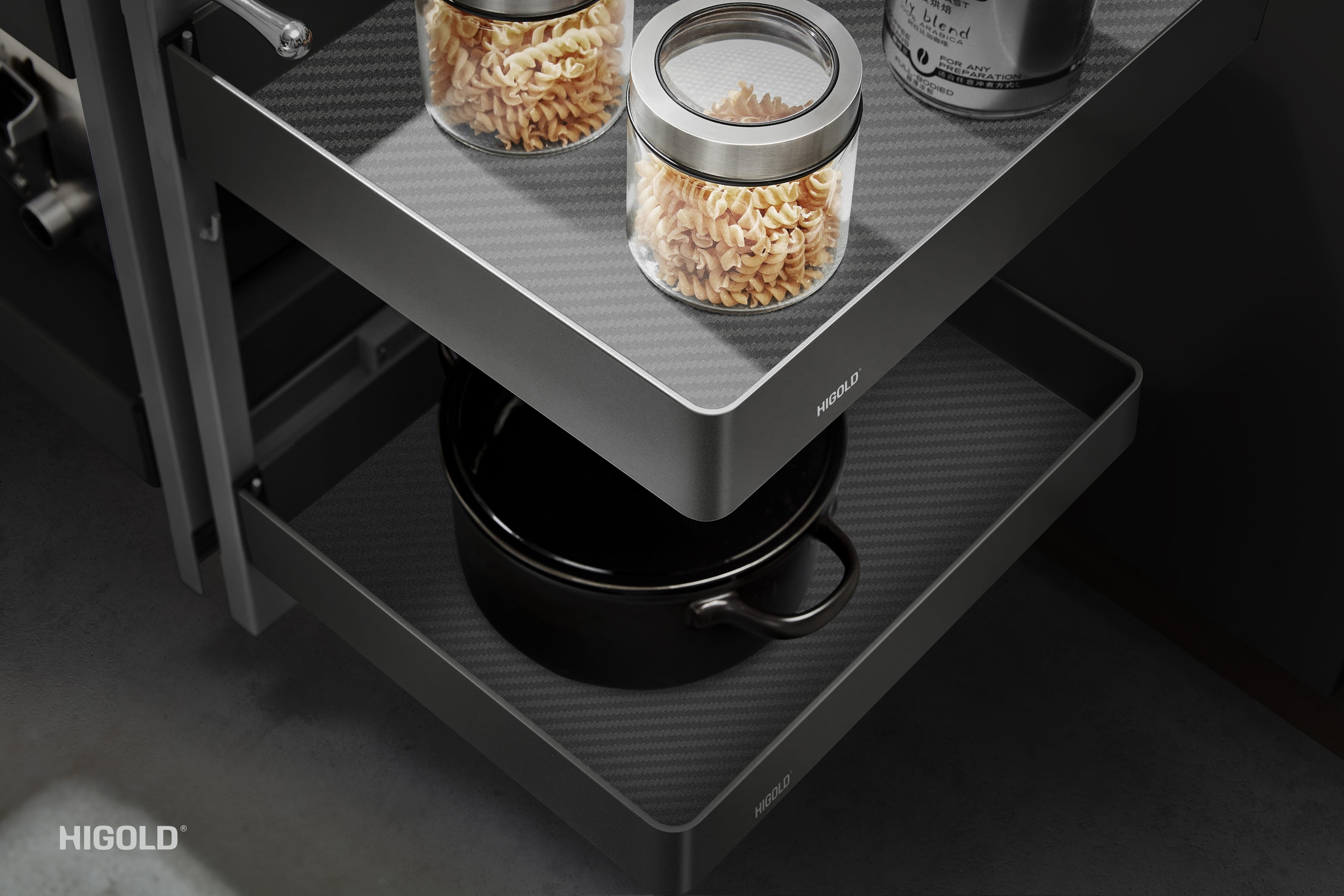 + Tận dụng các góc của tủ bếp để được nhiều đồ